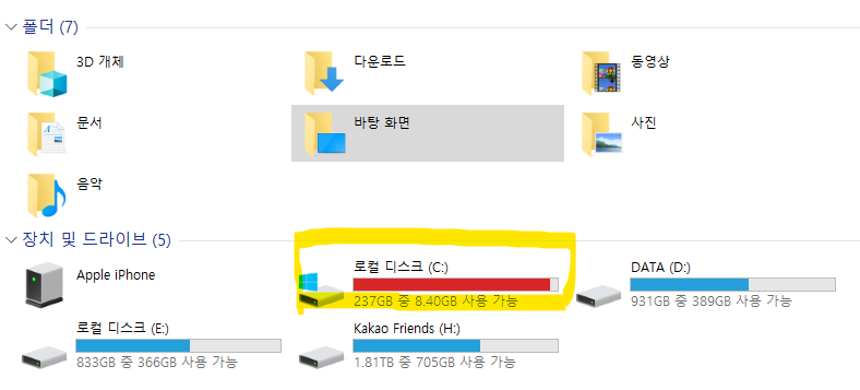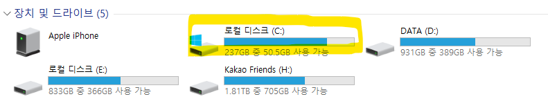 현재 사용중인 데스크탑 PC가 오래된거라 윈도우가 설치된 SSD 용량이 240G 인데요, 이것 저것 설치했더니 용량이 꽉 차서 더이상 뭘 설치할 수가 없더라구요. 설치된 프로그램을 지워도 다 필요한 것들이라 한계가 있더라구요.